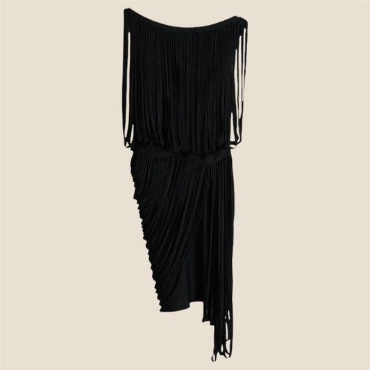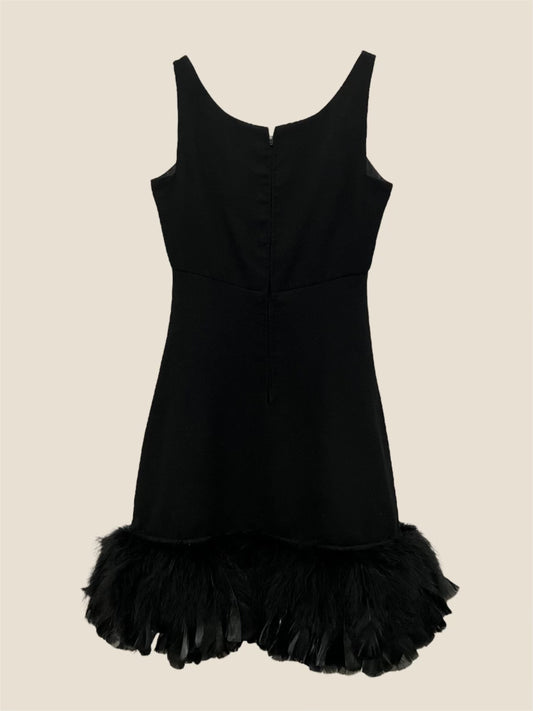 Vintage 1967 Geoffrey Beene Black Wool & Feather Cocktail Dress