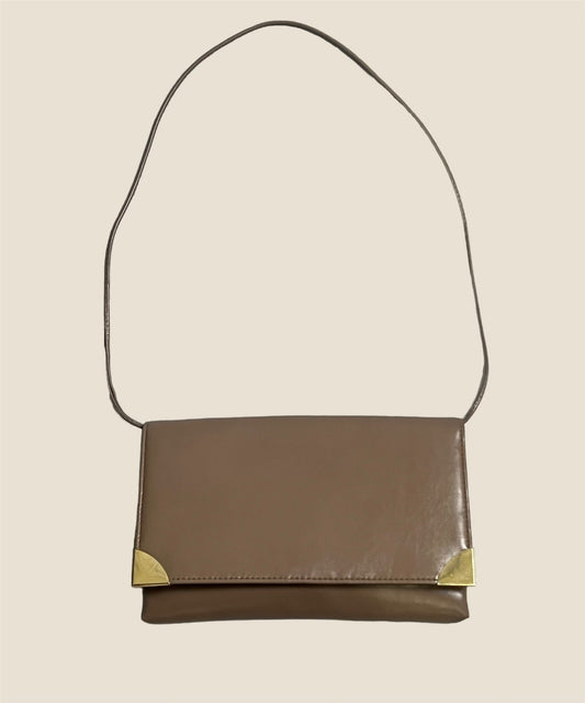 Vintage Beige Leather Shoulder Bag
