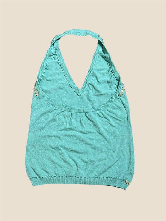 Vintage Y2K Moschino Cheap & Chic Teal Knit Halter Top