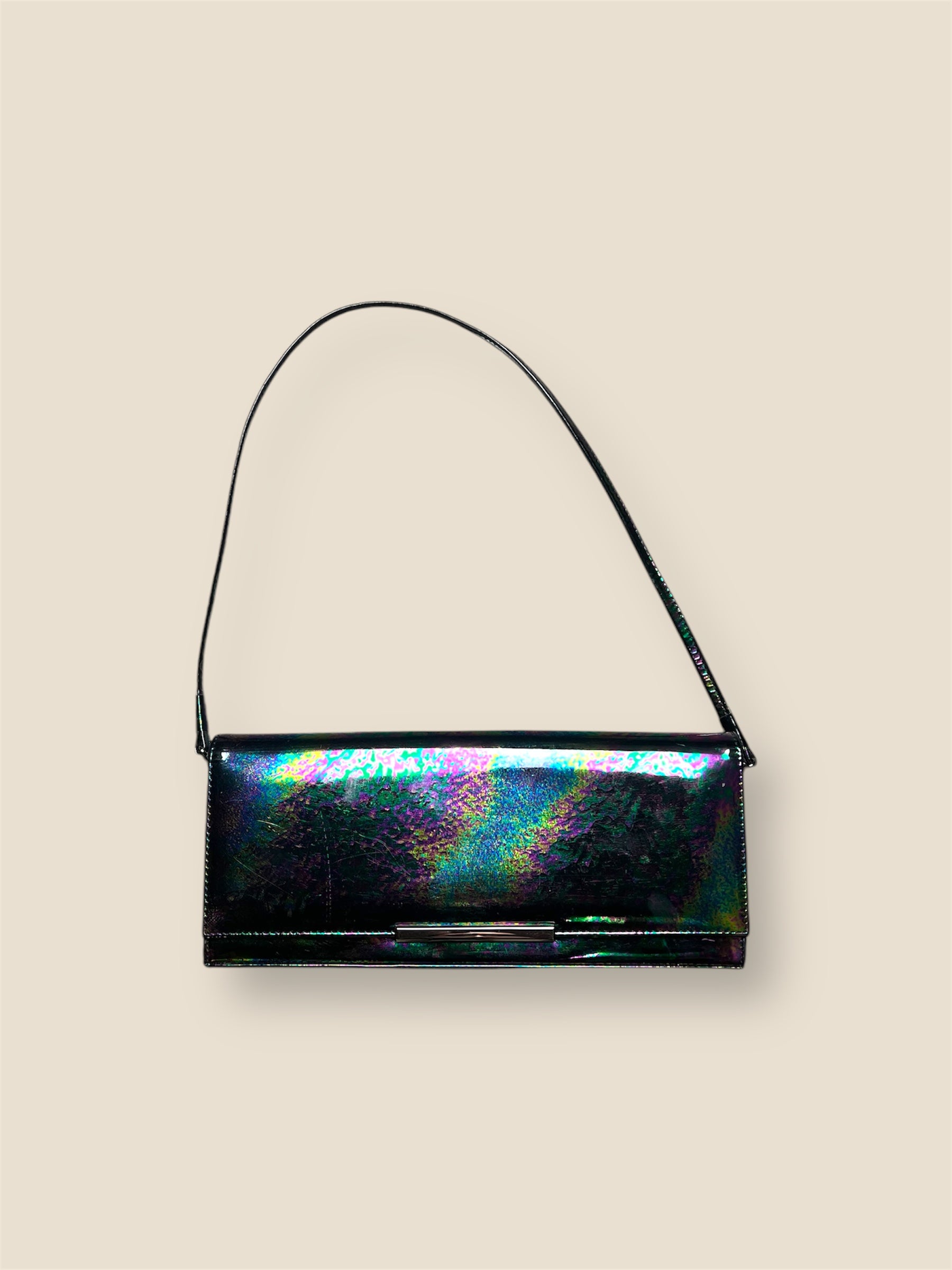 Vintage Stewart Weitzman rainbow effect back patent leather shoulder bag. In excellent pre-loved condition.