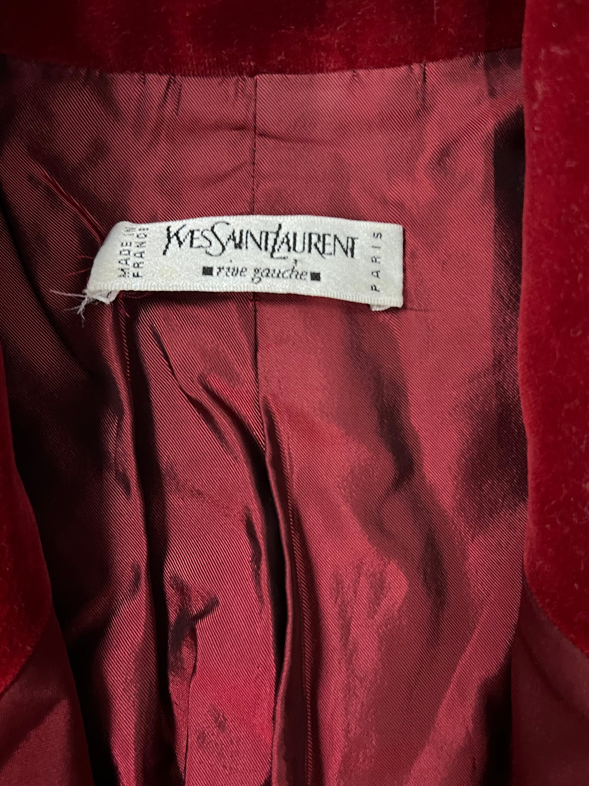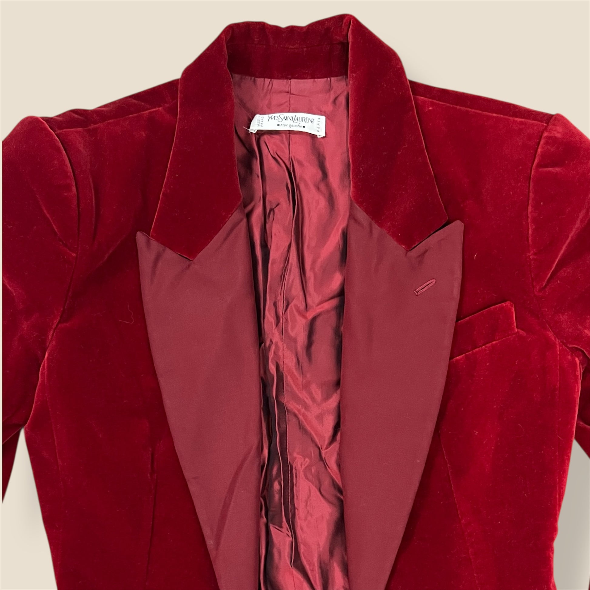 Vintage YSL Yves Saint Laurent Deep Red Velvet Blazer Size 36 XS/S